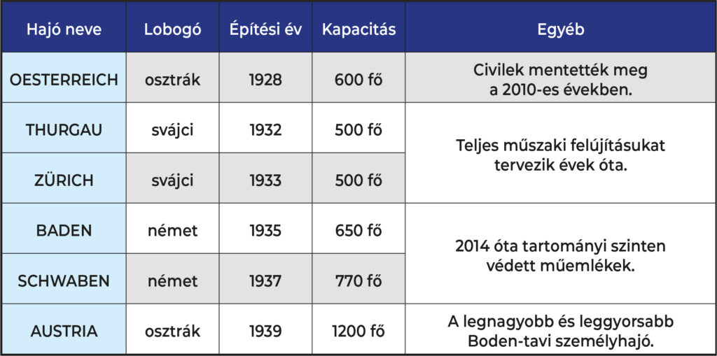 A II. világháborút megelőző években épült korszerű Boden-tavi motoros nagyhajók születésükkor nagy számban váltották ki a korábbi lapátkerekes gőzhajókat, és a későbbiekben hosszú évtizedeken át meghatározták a tavi hajózás arculatát.
